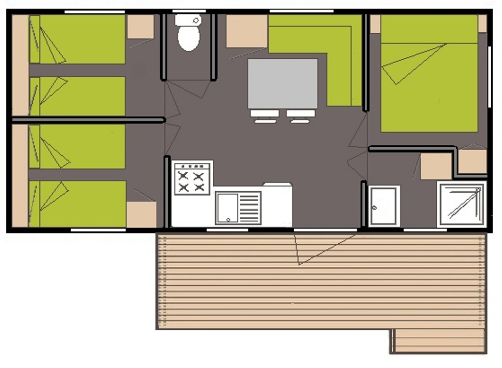 Coin nuit : une chambre avec 1 lit double (140×190) et deux chambre avec deux lits simples (80×190) côte à côte, oreillers fournis, couettes et/ou couvertures fournis.